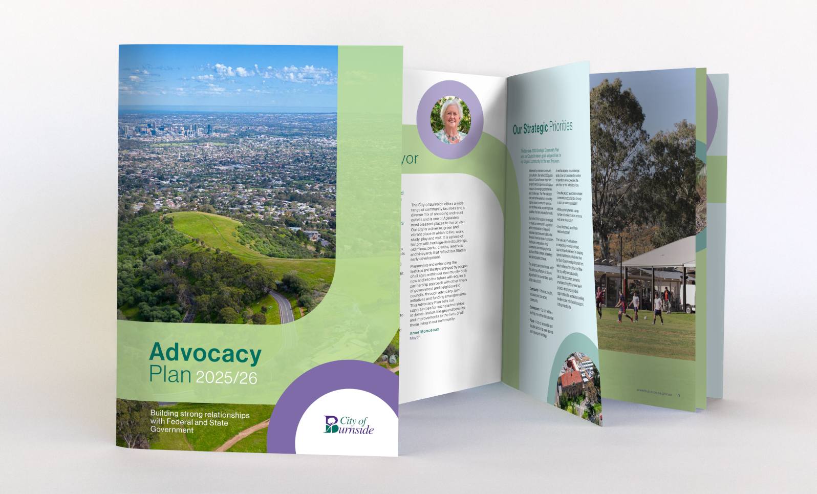 Advocacy ultimately helps councils meet the community needs. We prepare many Advocacy documents for councils and these are increasingly becoming more important to help with the planning of long term goals and objectives. We also do many other corporate documents for Burnside including Strategic and Business Plans, Annual Reports and resident Consultations, each with their own unique and engaging design.