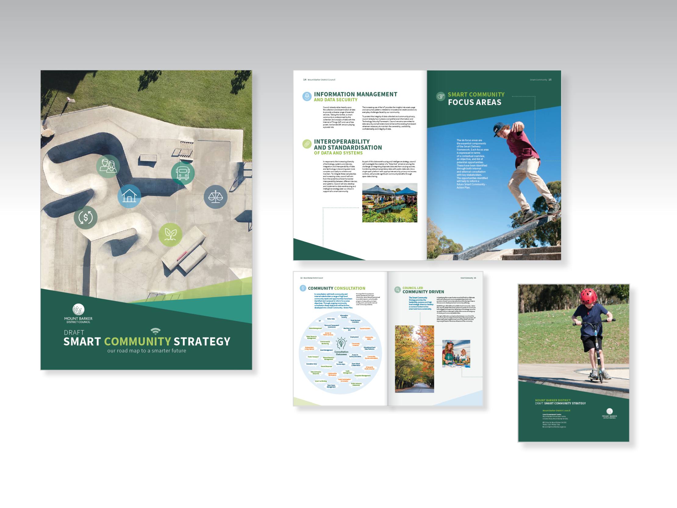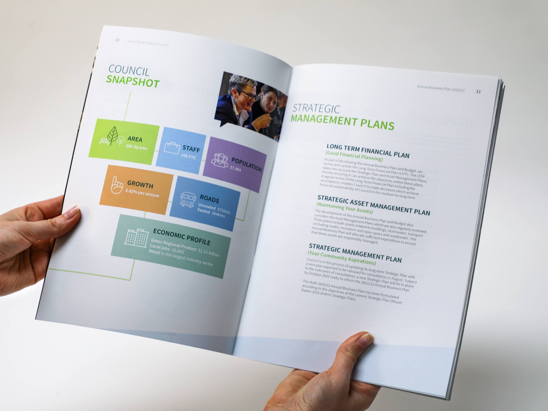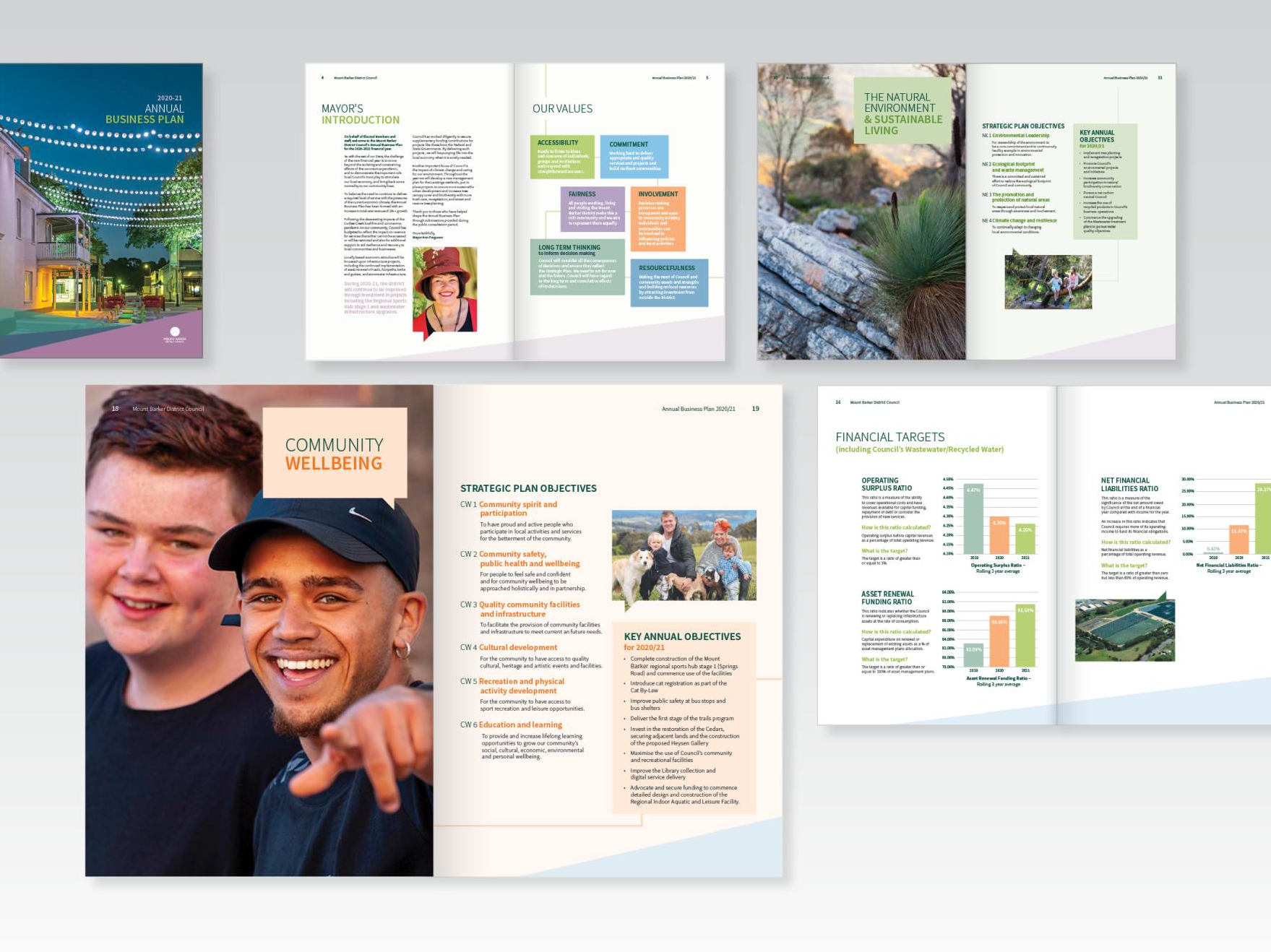 documents such as plans and annual reports using colourful and informative diagrams, illustration and